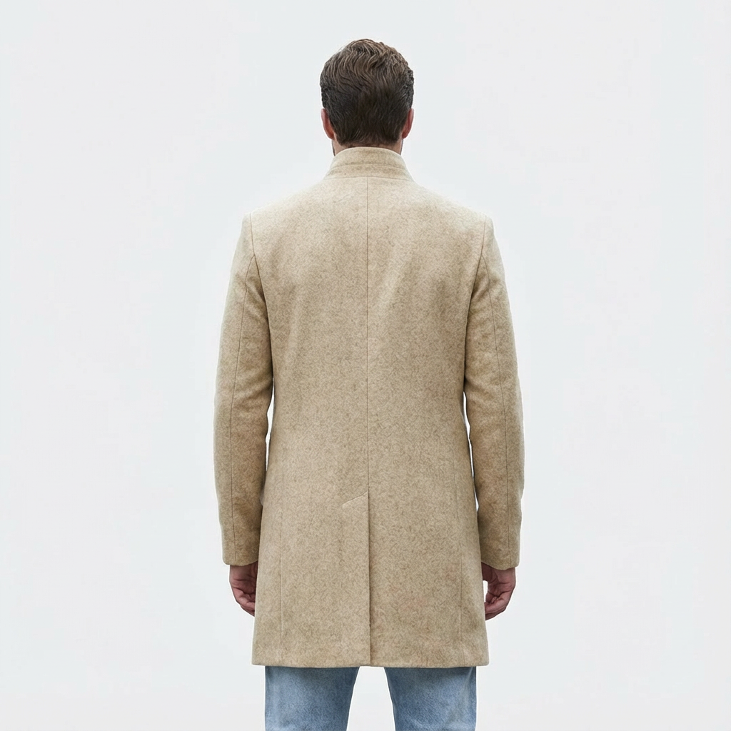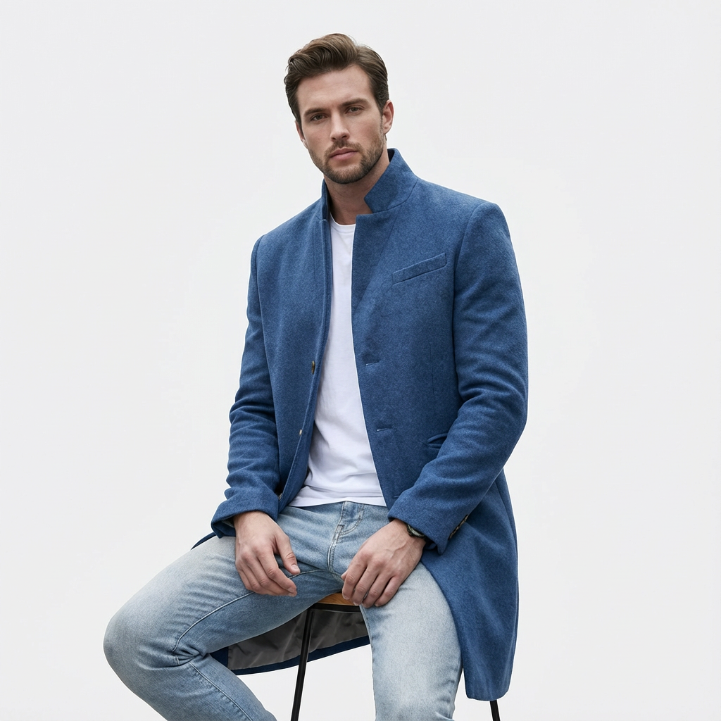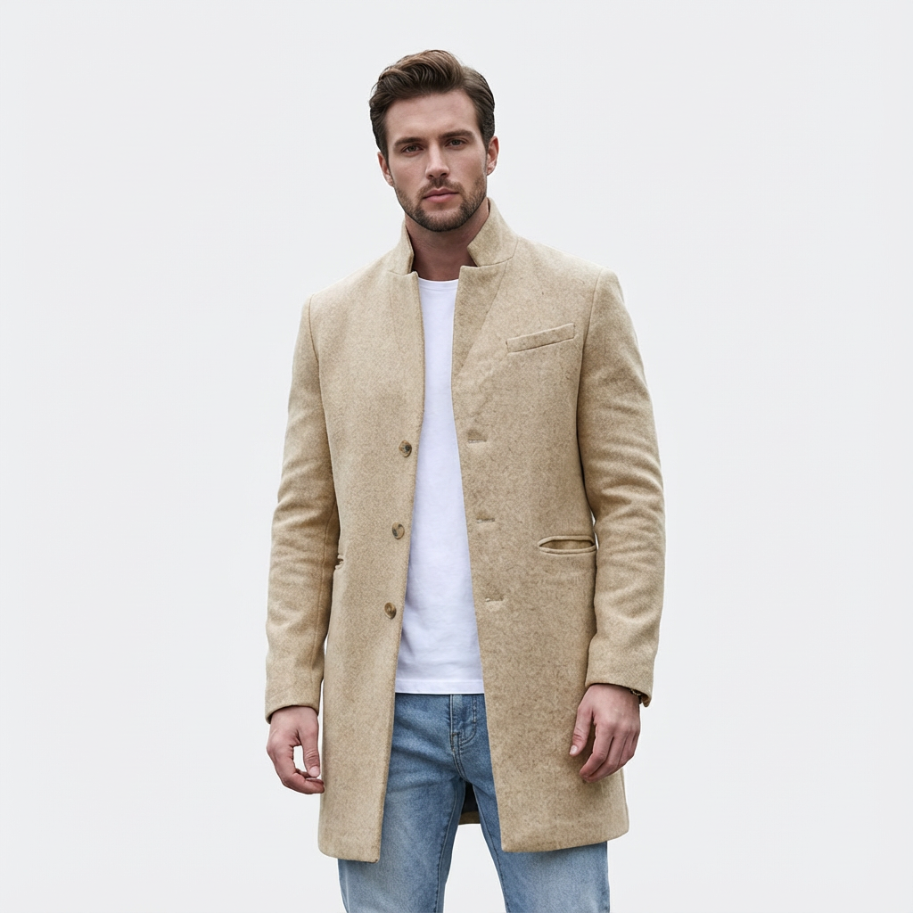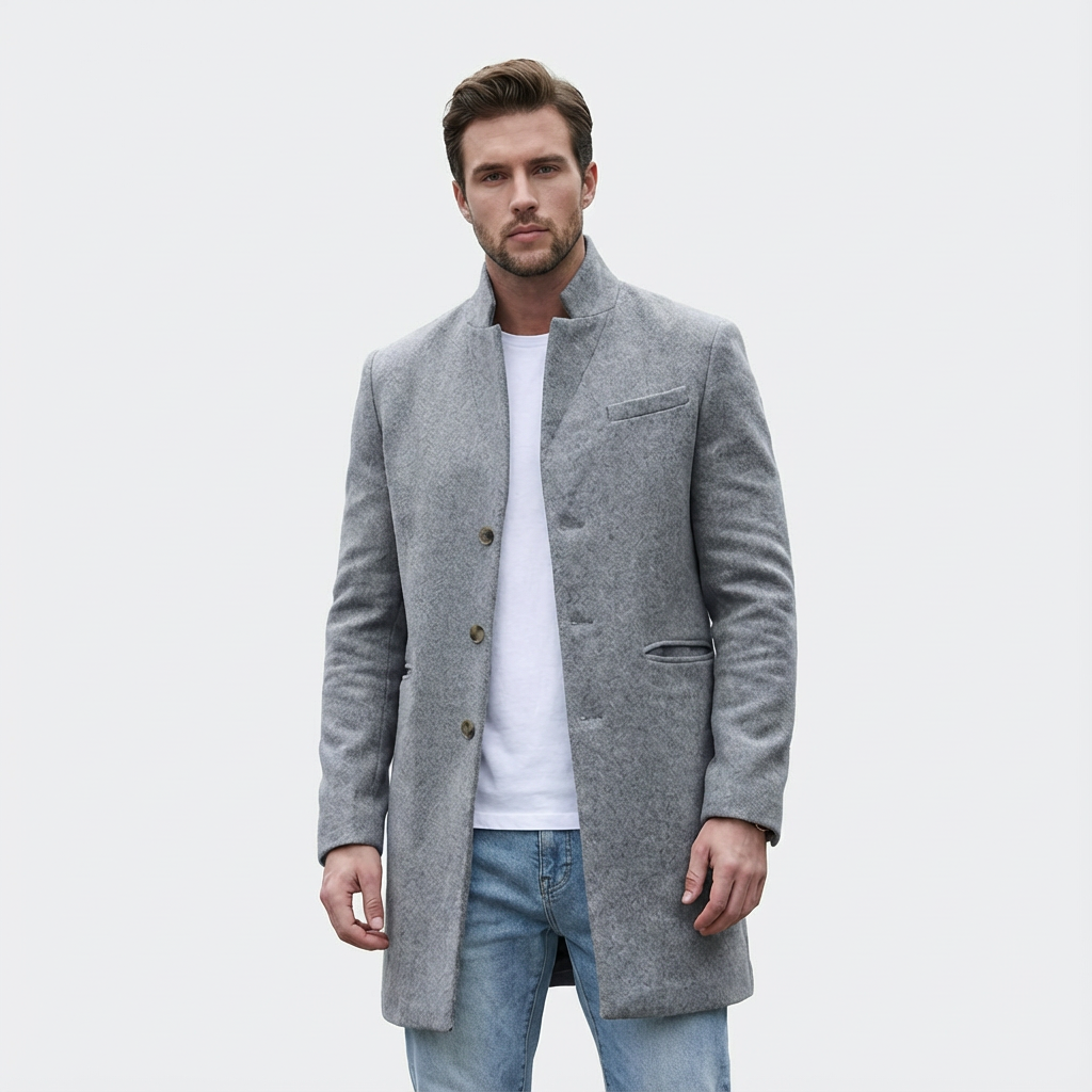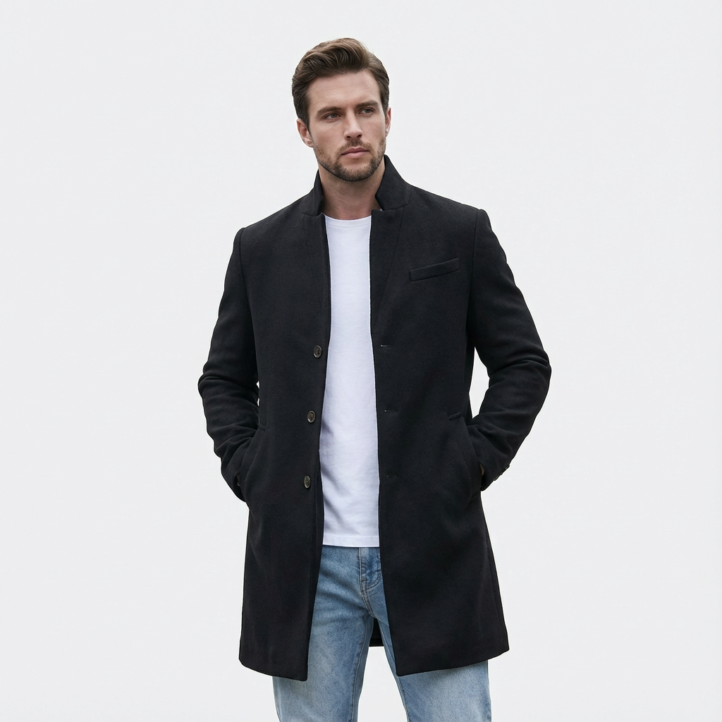 A long button-front coat with practical pockets. The streamlined longline cut layers smoothly over knitwear and tailoring for everyday winter wear.