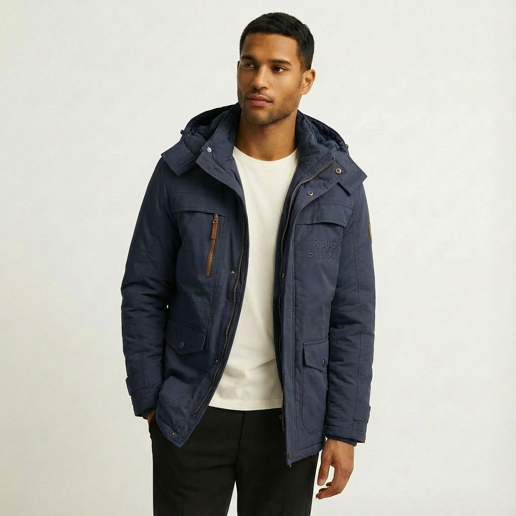 A quilted winter parka with a removable hood and windproof shell. Soft padding and a clean longline cut deliver dependable warmth for cold days.
