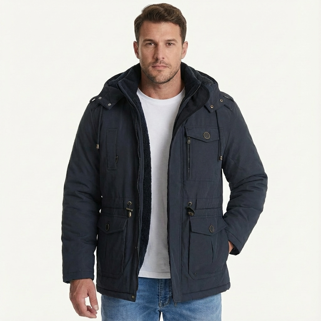 A robust winter jacket with a soft fleece lining for dependable cold-weather comfort. The practical silhouette is designed for easy layering and everyday wear. Finished with a clean, versatile look.