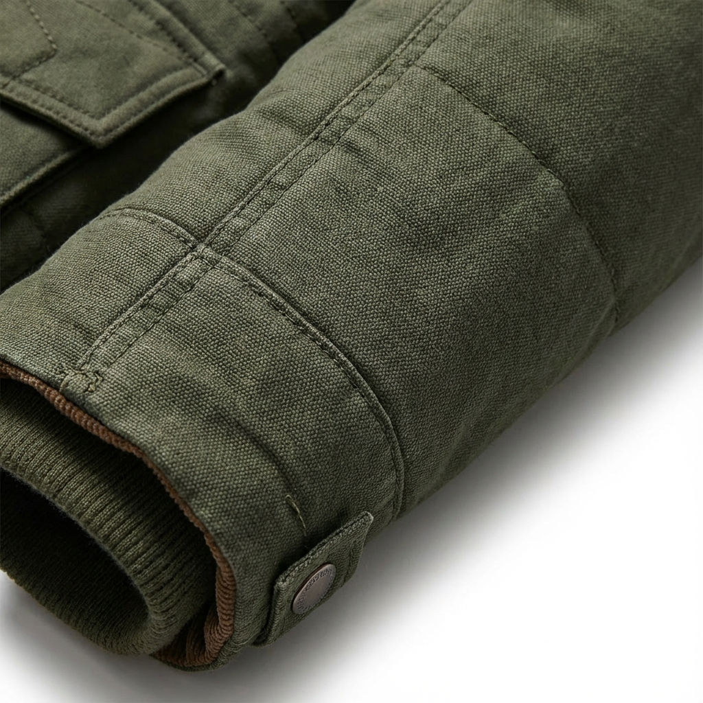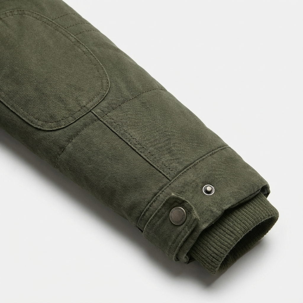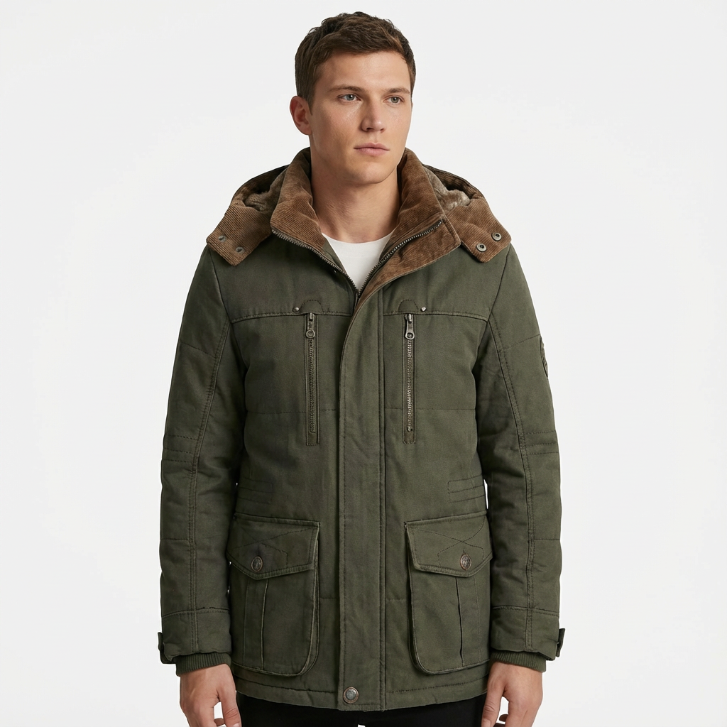 Design: Hooded puffer silhouette; zip front; side pockets; waterproof and windproof finish.