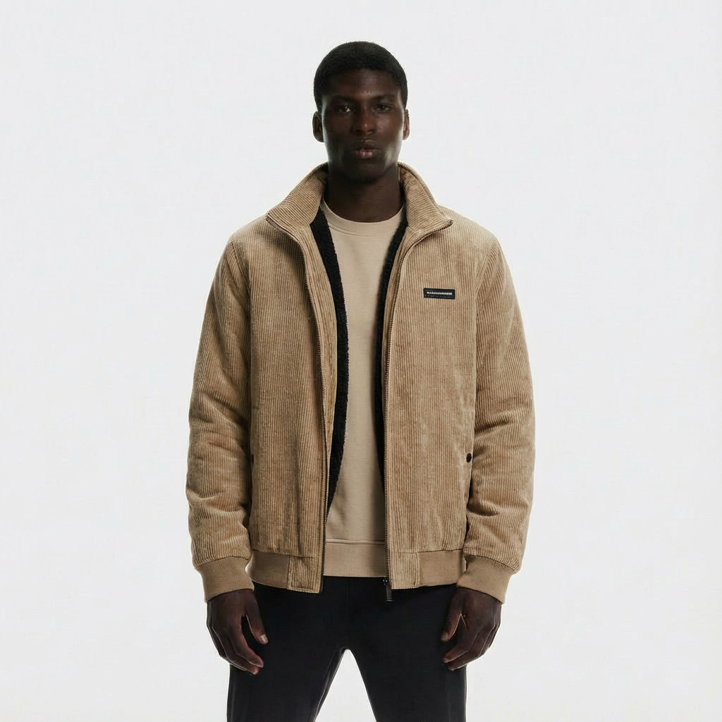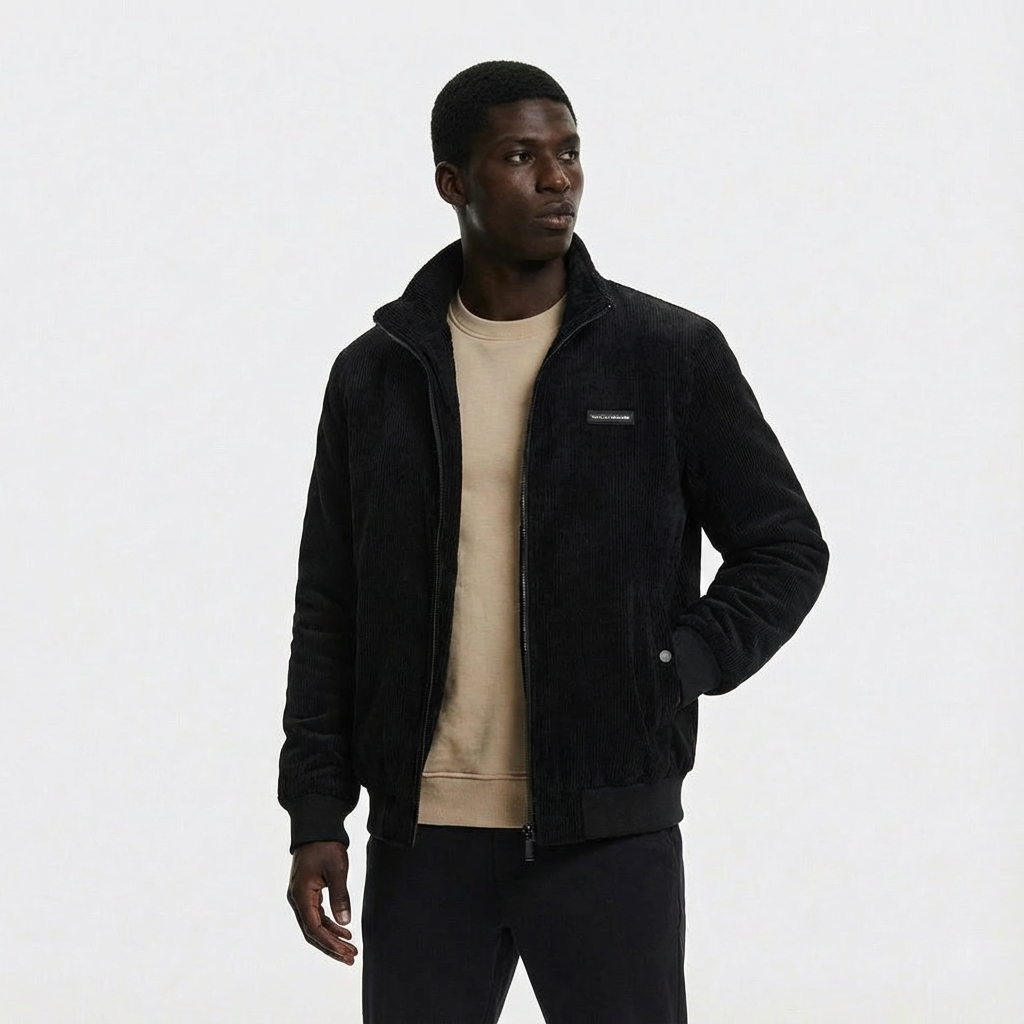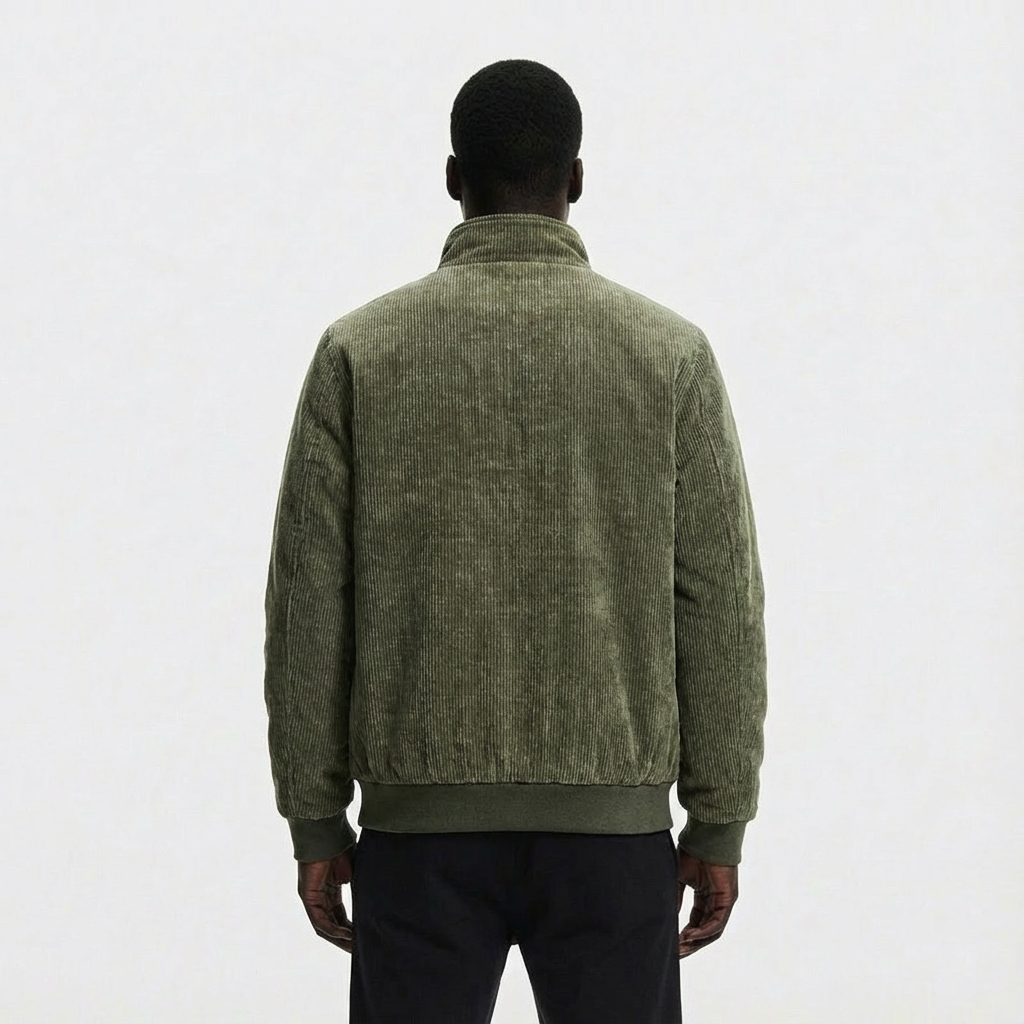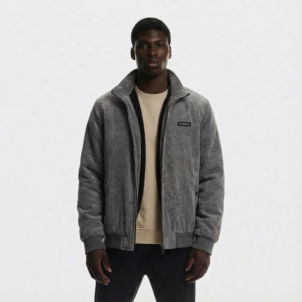 A winter corduroy jacket with a clean, timeless line. Soft, textured fabric offers comfortable layering across the colder months.