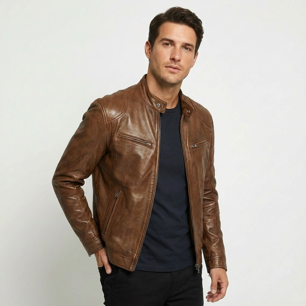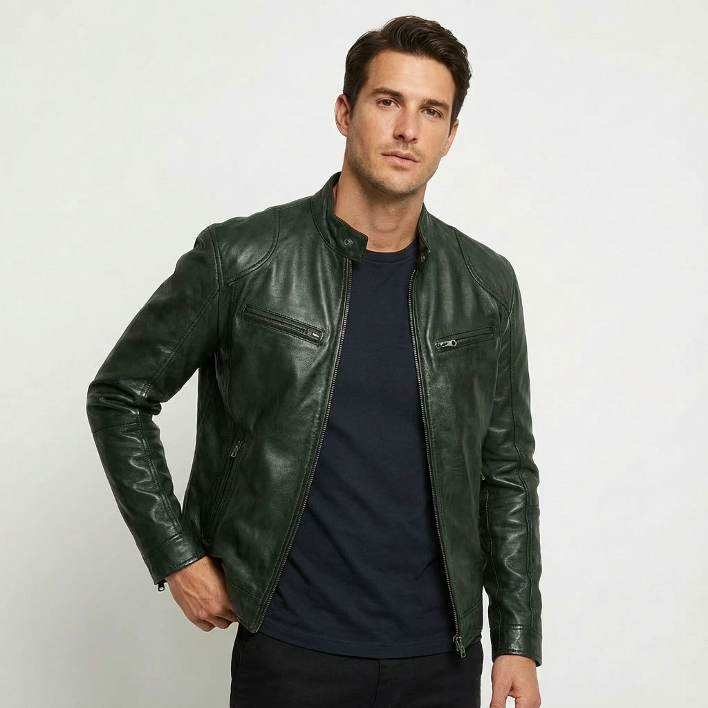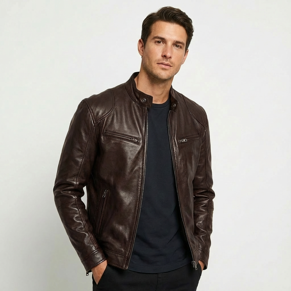 Samuel | Men’s Stylish Leather Jacket with Zip Front