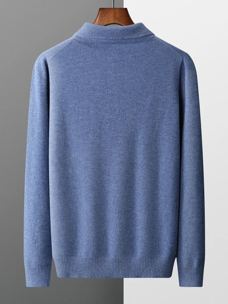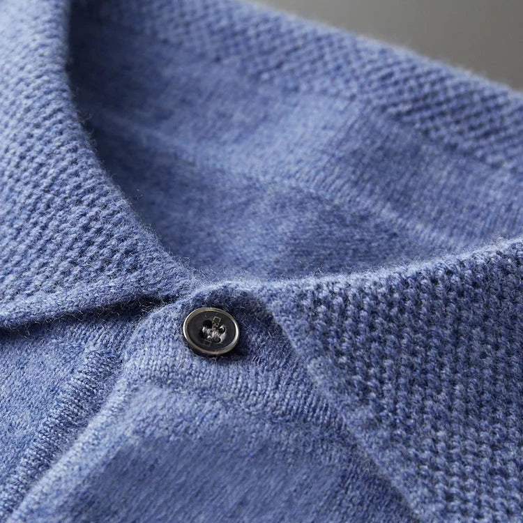 The  Men’s Casual Sweater Polo Shirt with Long Sleeve is a smart men’s knit top that blends a polished polo-collar look with the easy pull-on feel of a sweater, finished in wool for a clean, classic wardrobe staple. Designed to suit workdays, dinners, and weekends, this Polo shirt style pairs neatly with trousers, denim, or layered under a coat.