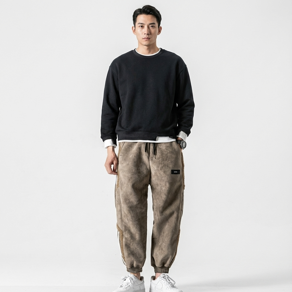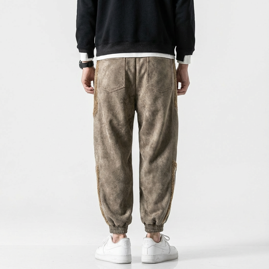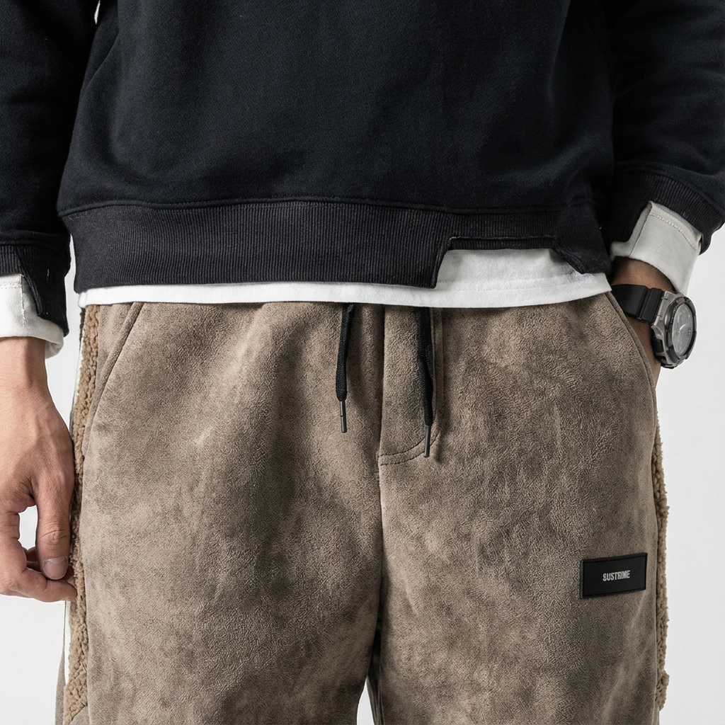 Design: Jogger silhouette; contrast side stripes; warm fleece lining; clean finish.