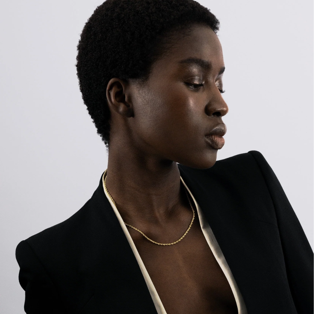 Meet the Women’s Rope Chain Necklace, a waterproof rope-chain necklace crafted in 316L stainless steel with 14k gold PVD. In a luminous Gold finish, the 40–45 cm adjustable chain resists tarnish for everyday wear, perfect solo or layered and ready to gift.