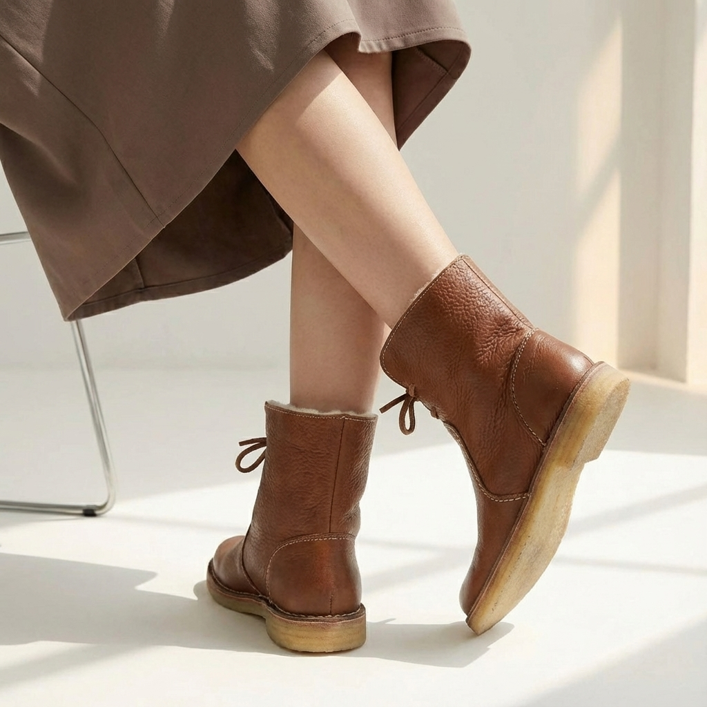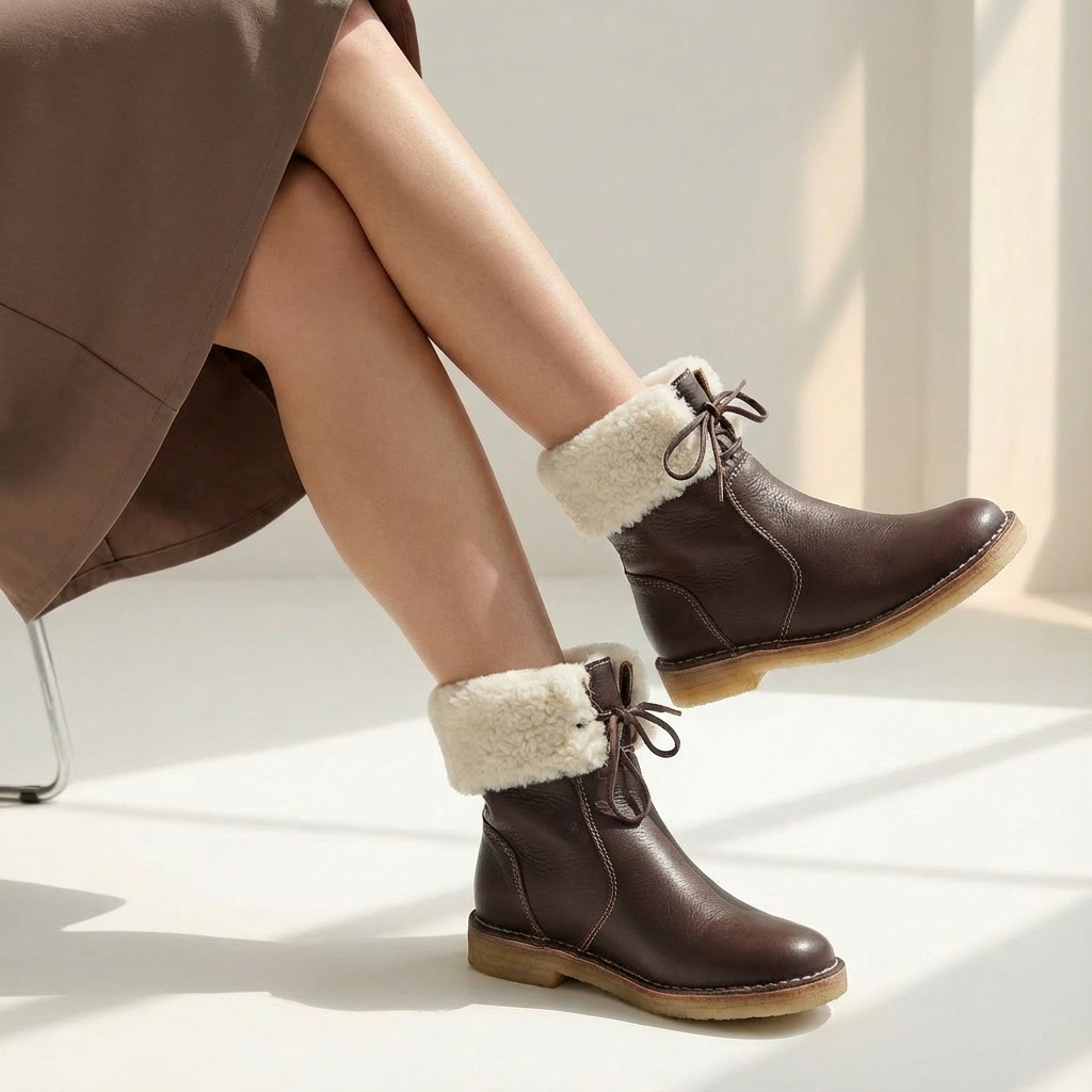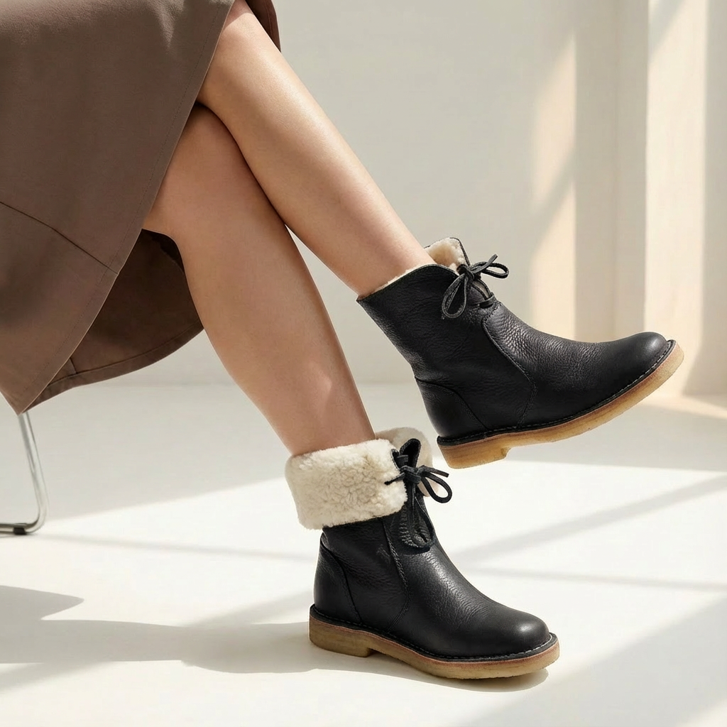 Winter ankle boots with a warm lining for cold days. A simple, easy-on design and a grippy sole make them practical for everyday wear.