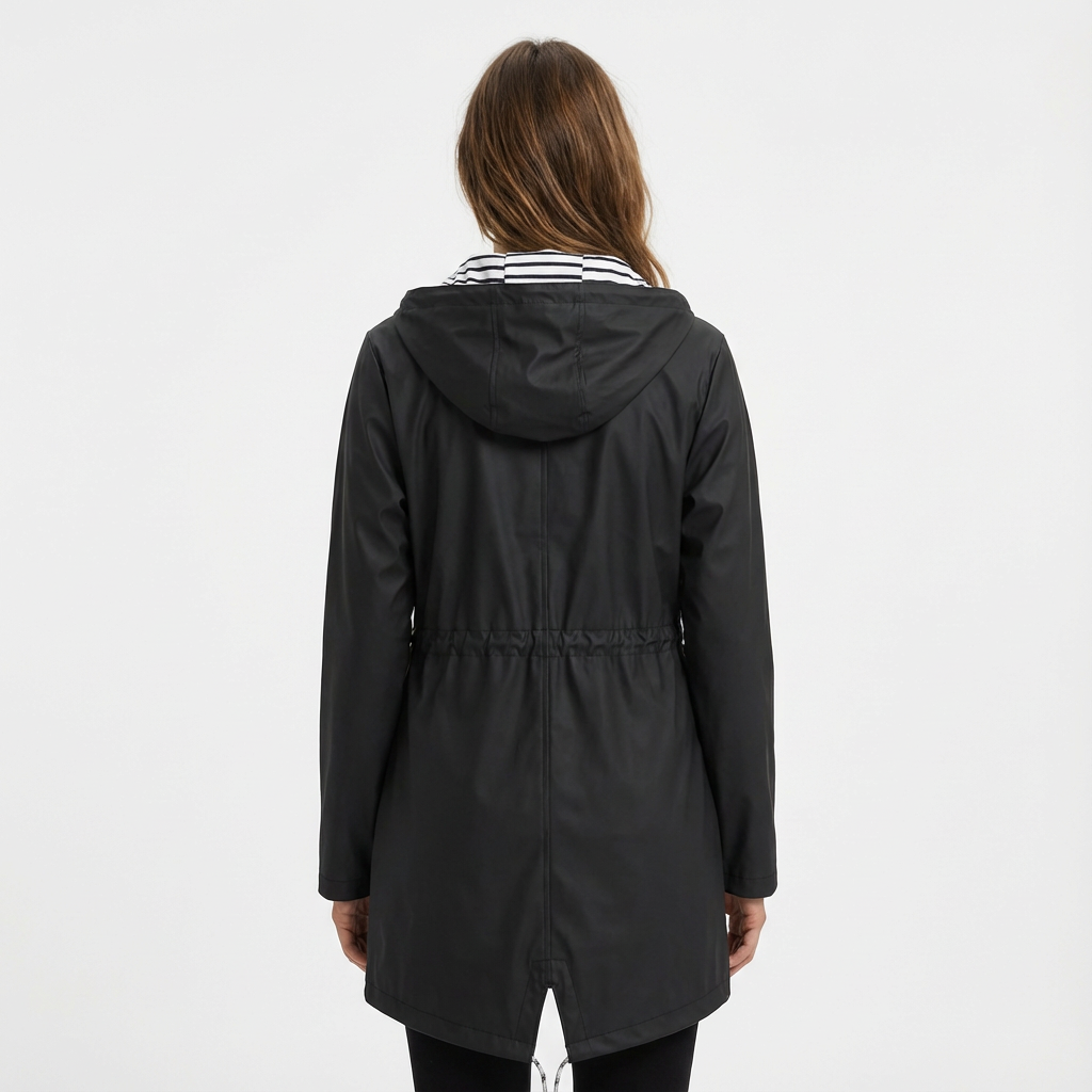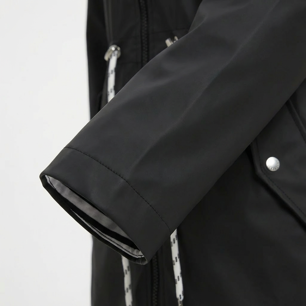 • Design: Hooded design; long sleeves; mid-length; clean waterproof finish; streamlined look.