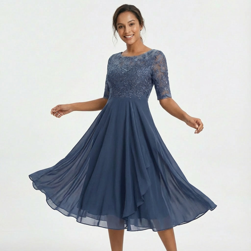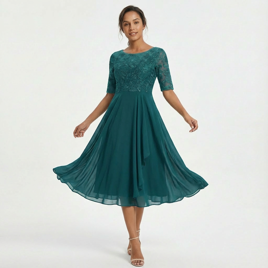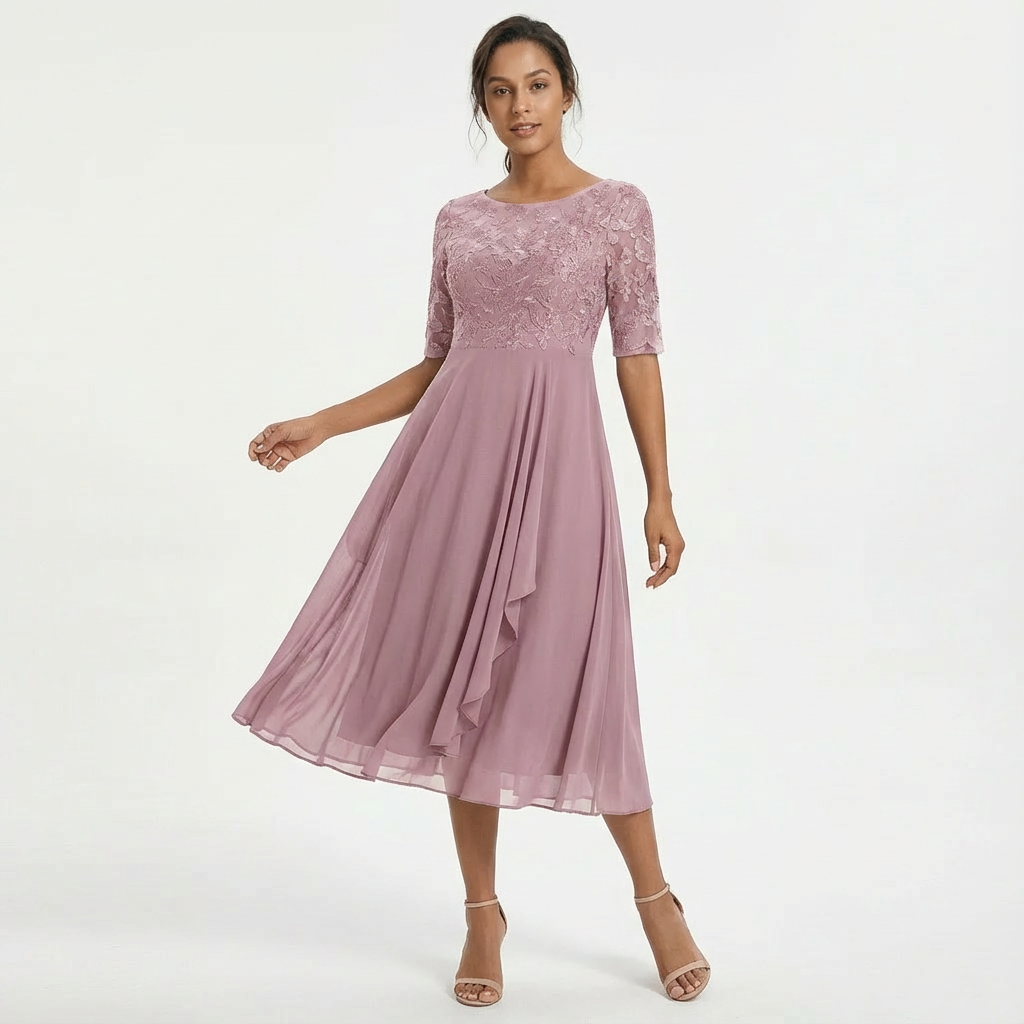 Eliza | Women’s Lace Midi Wedding Guest Dress with Half Sleeves