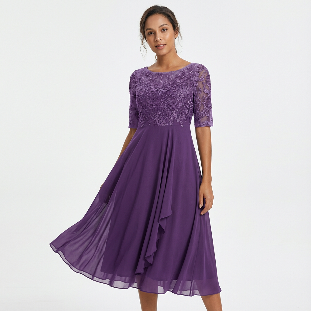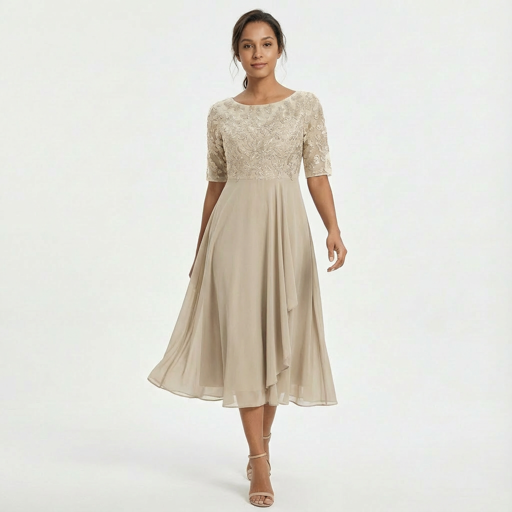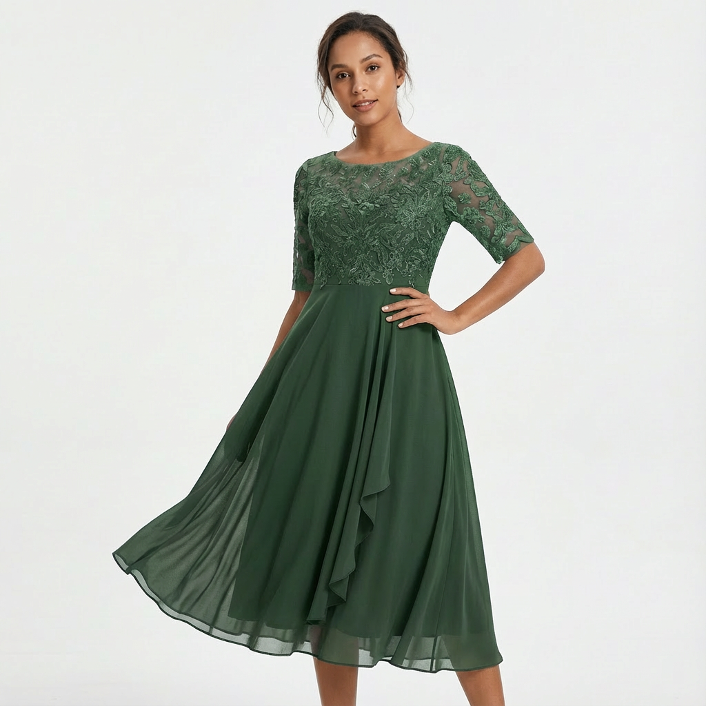 Eliza | Women’s Lace Midi Wedding Guest Dress with Half Sleeves