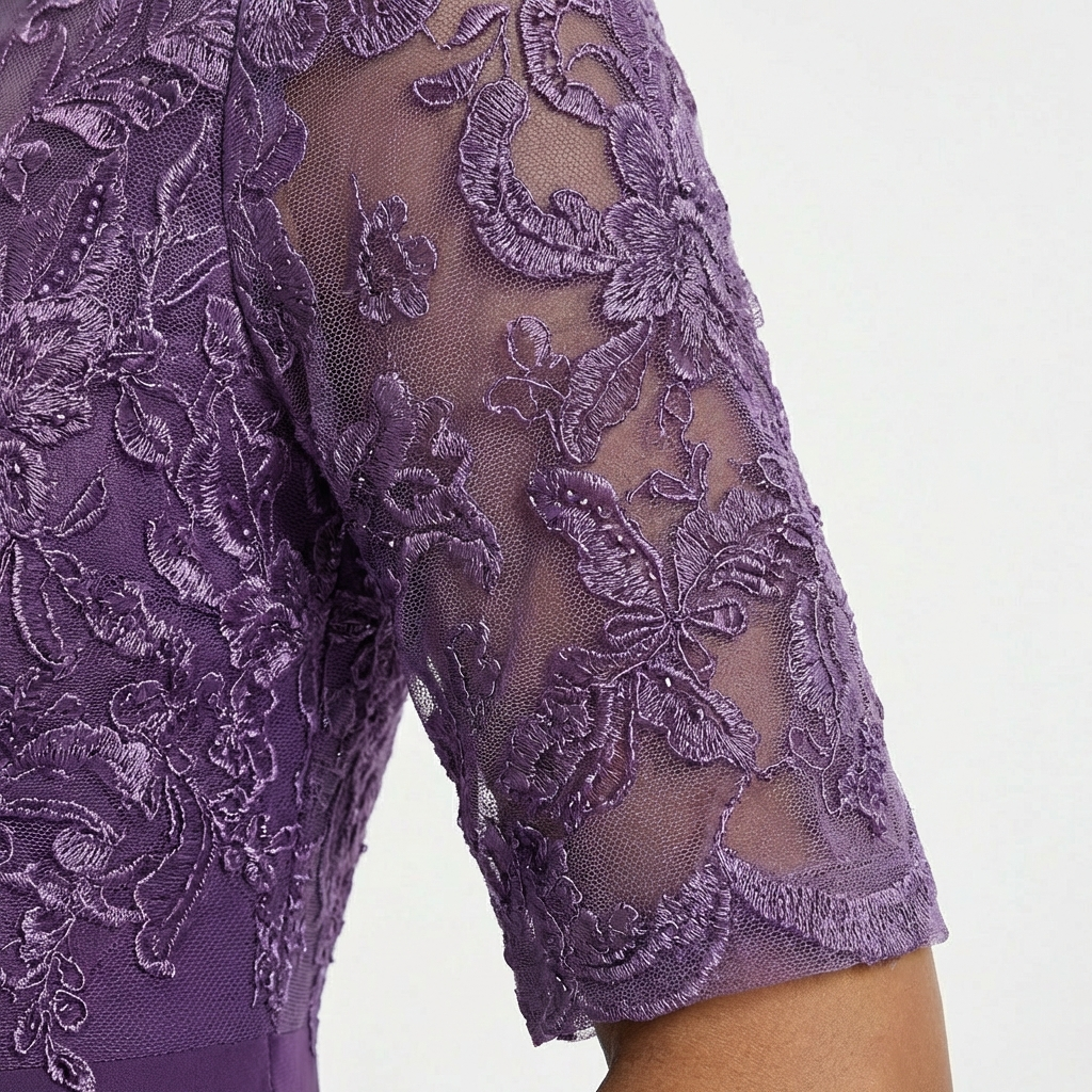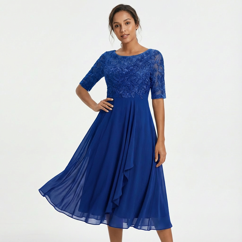 Elegant and occasion-ready, Women’s Lace Midi Wedding Guest Dress with Half Sleeves is a softly lined midi-to-ankle dress with a decorative lace bodice and a fluid A-line skirt that moves easily. This Wedding Guest Dress has a lace texture through the top and a flowing skirt for a polished finish.
