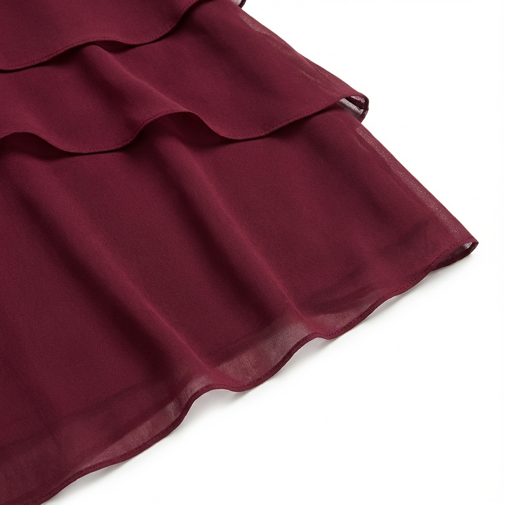 • Design: Tiered silhouette; flowing layers; soft drape; clean finish.