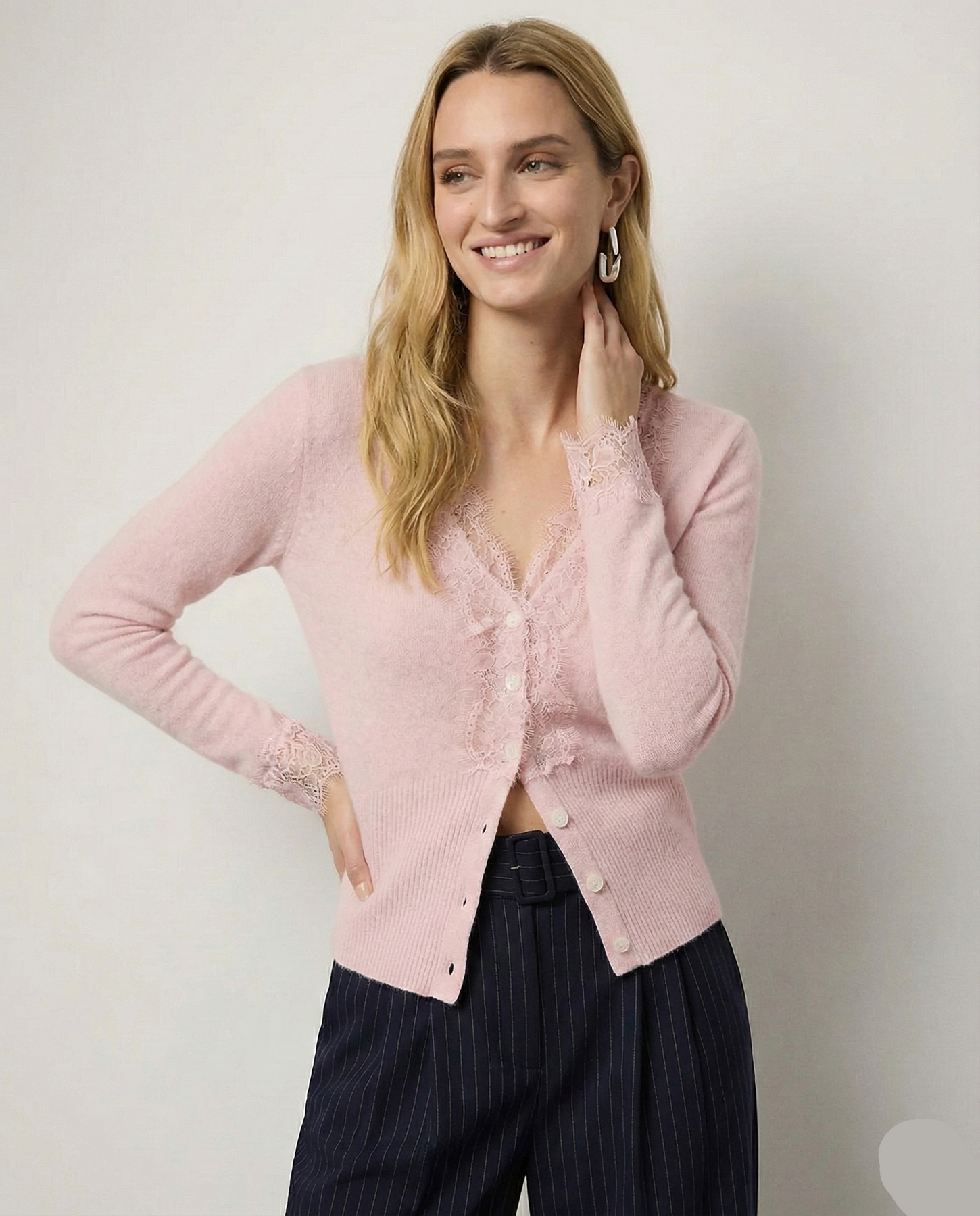 Millie | Women’s Minimal Lace-Trim Cardigan with Button Front